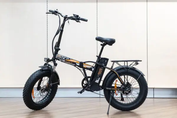TELAIO MODELLO: Fat-bike, pieghevole MATERIALE: Lega di alluminio, 6061 TAGLIA: 20” SERIE STERZO TIPOLOGIA: In alluminio, con manubrio pieghevole e regolabile MANUBRIO: Riser bar FRENI TIPOLOGIA FRENO: A disco PINZA FRENO ANT.: Meccanica, FILEL PINZA FRENO POST.:Meccanica, FILEL LEVE FRENO: In alluminio. MOTORE MODELLO: JIABO Motor TIPOLOGIA: Corrente continua senza spazzole (Brushless) CENTRALINA: 18Ah POTENZA: 250 Watt VOLTAGGIO: 36 Volt COLLOCAZIONE: Ruota posteriore. CONTROLLER MODELLO: KEYDYSP KD58C-KDS TIPOLOGIA: Multifunzione con display LCD LIVELLI PAS: 5 livelli (velocità) CRUISE CONTROL: Si, max 6Km/h FUNZIONI: Indicatore stato batteria, retroilluminazione, odometro, livelli pas. ACCESSORI BUSSOLA: Non presente CLACKSON: Si. FORCA Forcella in alluminio con sospensione meccanica. CERCHIO: Alluminio MOZZO ANT.: Con disco freno MOZZO POST.: Con motore e disco freno. FRENI TIPOLOGIA FRENO: A disco PINZA FRENO ANT.: Meccanica, FILEL PINZA FRENO POST.:Meccanica, FILEL LEVE FRENO: In alluminio. CAMBIO RAPPORTI CAMBIO: 7 Velocità DERAGLIATORE ANT.: Non presente DERAGLIATORE POST.: SHIMANO Tourney / RD-FT35A COMANDI: SHIMANO SL-TX50-7R CORONA: Alluminio, singola, 1 velocità. BATTERIA CAPACITA: 36V 10.4AH (374,4 Wh) CAPACITA: (opzionale): 36V 15AH (540 Wh) TIPO CELLE: Ioni di litio (Li-Ion) con elementi TCRFD-LH TEMPO DI RICARICA: 6 – 8 ore (circa) CICLI DI RICARICA: 1000 cicli (circa) C