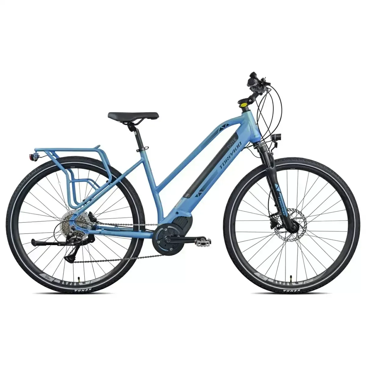 SPECIFICHE BICICLETTA TELAIO Aluminium 6061 FORCELLA Suspended CH141 CAMBIO Shimano TY300 7S COMANDI Shimano DS RV400-7R FRENI Shimano MT200 Hydraulic Disc RUOTE 28" black rims PIANTONE Quill type black COPERTURE 700x40 Kenda K1172