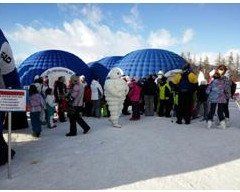 Summer Ebike Tour con l'ausilio di un villaggio gonfiabile itinerante costituito da diversi stand igloo gonfiabili che durante i week end della stagione estiva, visiterà le principali località. All'interno degli stand igloo del villaggio vengono allestite aree espositive e di sevizio dove è possibile visionare e testare le nuove attrezzature proposte dai vari sponsor. Grazie alla versatilità degli stand gonfiabili e la loro praticità d'uso è possibile adattare un intero villaggio itinerante all'area espositiva a disposizione, modificandone la pianta di volta in volta.